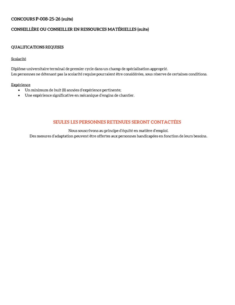 - Un minimum de huit (8) années d’expérience pertinente;